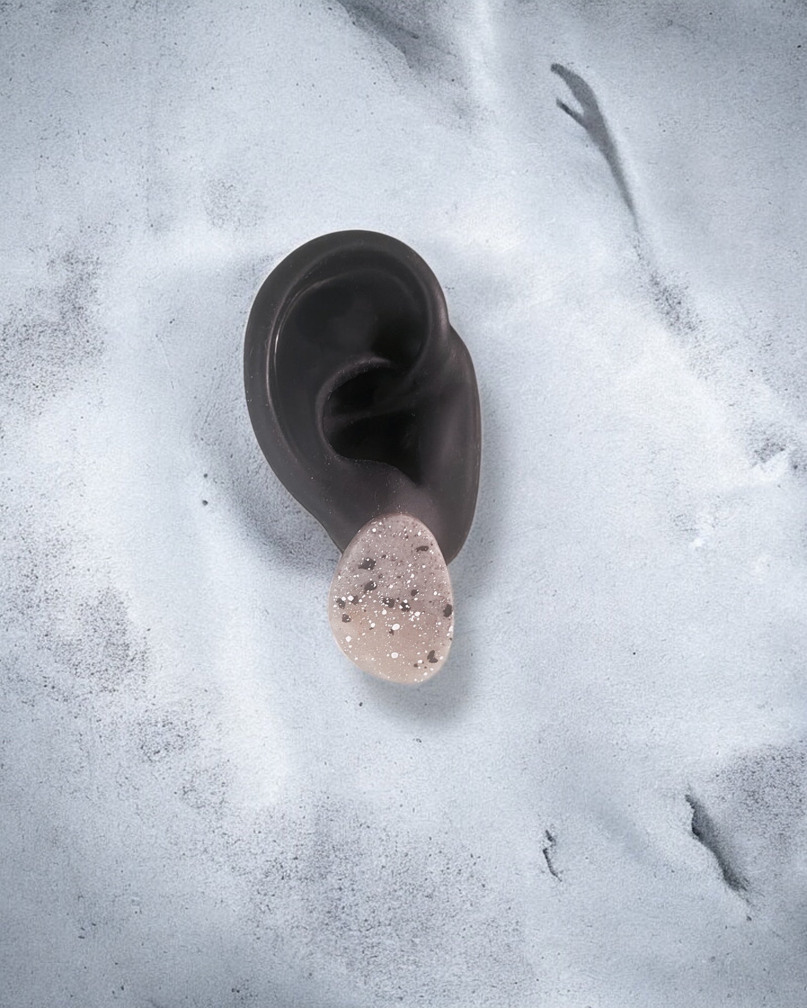 Dos piedras de luna en la tierra. Aretes circulares con mucho carácter. Edición limitada y pintados a mano.