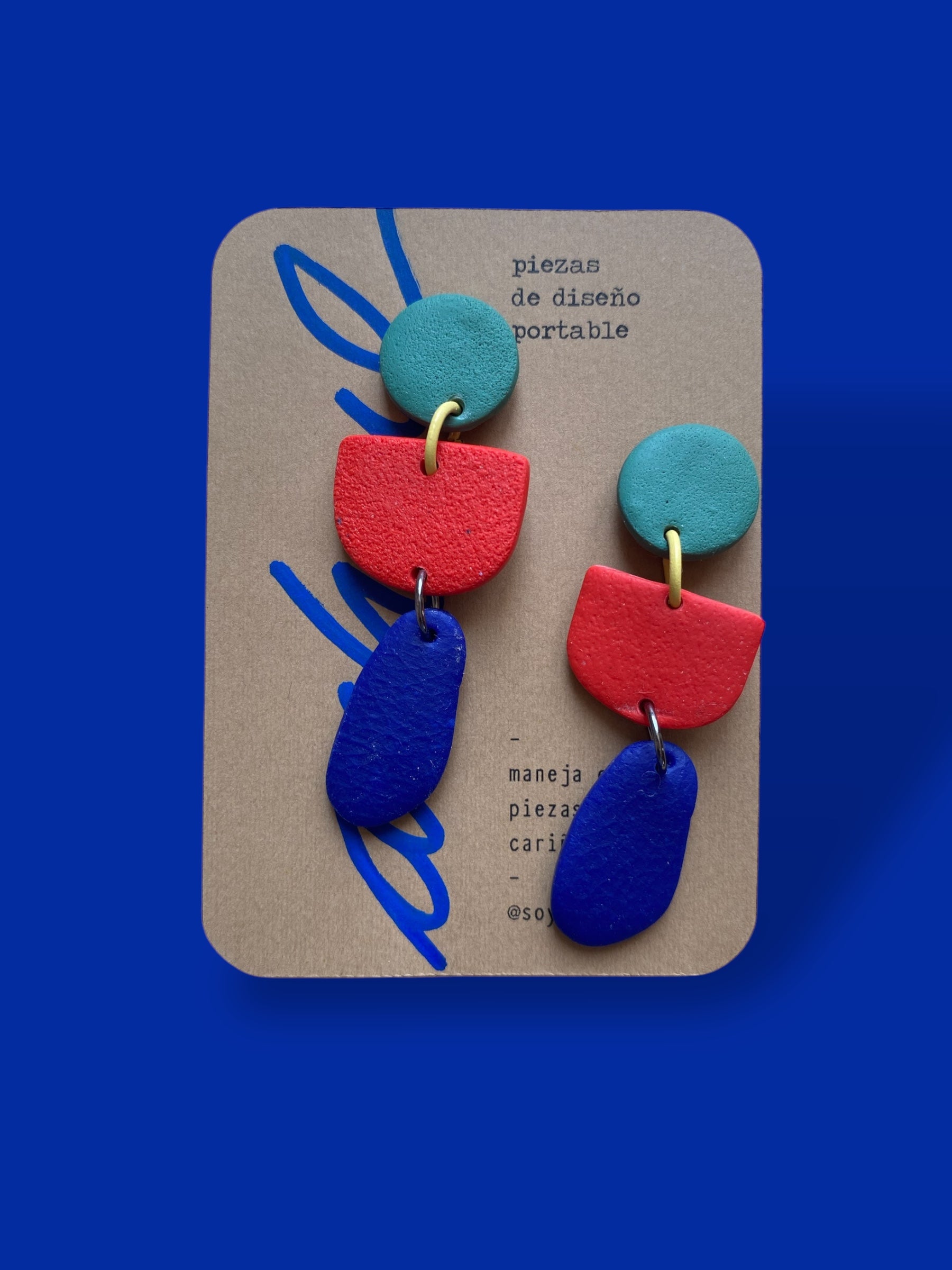 Un trío de figuras en un arete que va desde lo circular y geométrico hasta la caída orgánica.