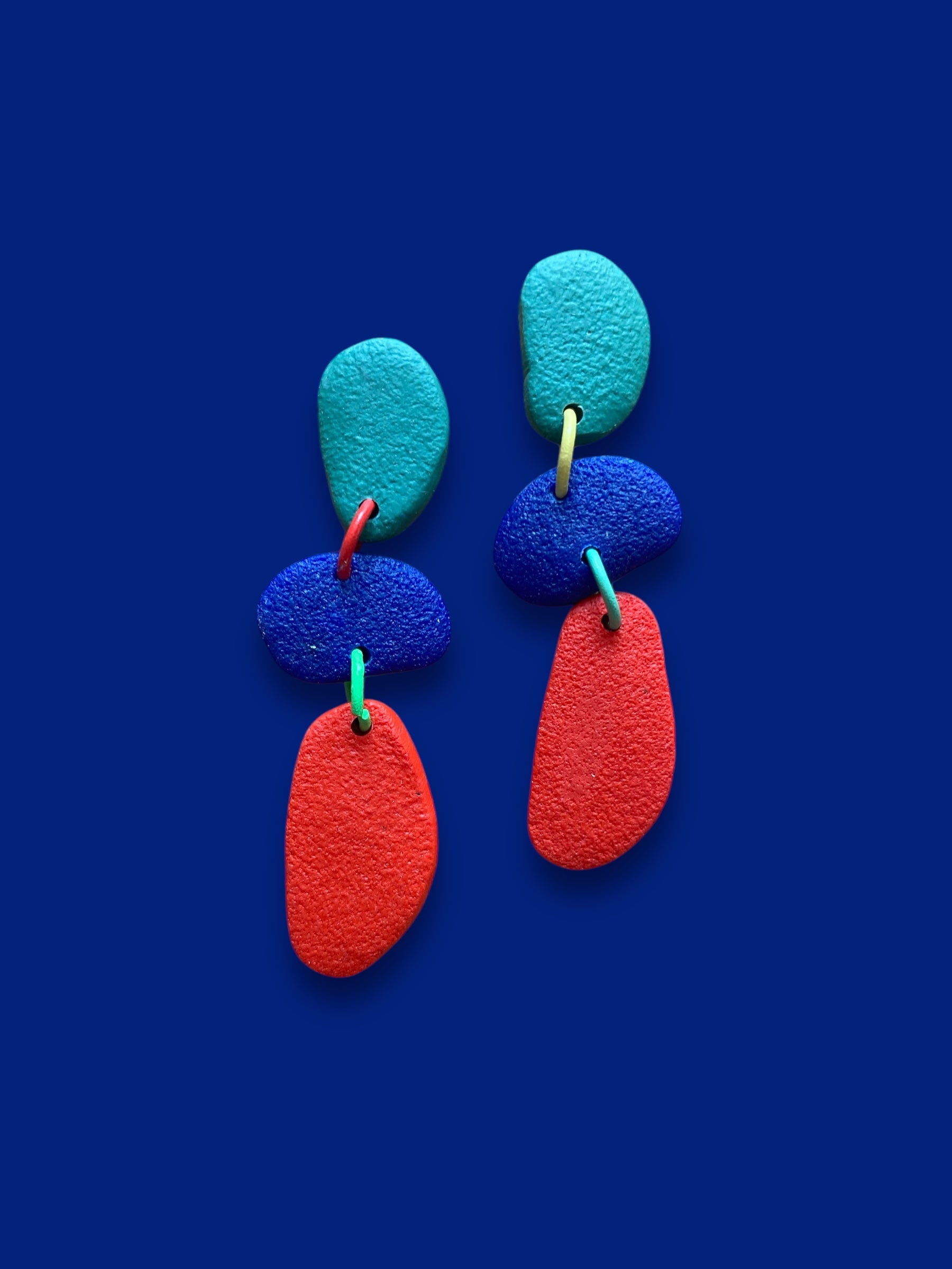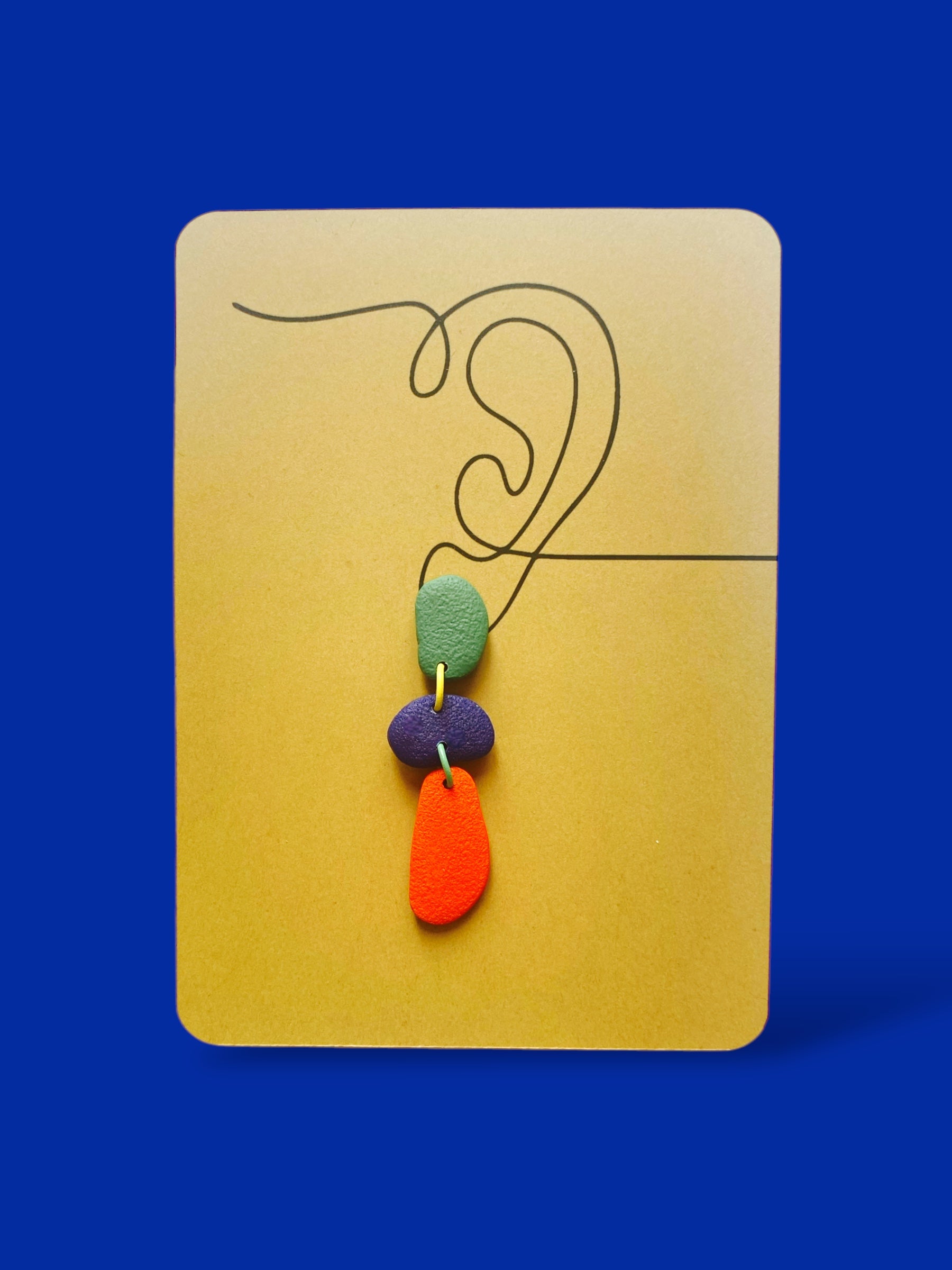 Una reinterpretación del modelo emblema de ésta colección. Tres piezas colgantes, caída larga y formas orgánicas, irrepetibles y auténticas.